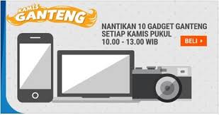 - KAMIS GANTENG. 5 gadget mentereng dengan diskon gila-gilaan akan hadir bergantian selama 1 jam di hari Kamis mulai pukul 10.00 WIB – 15.00 WIB.